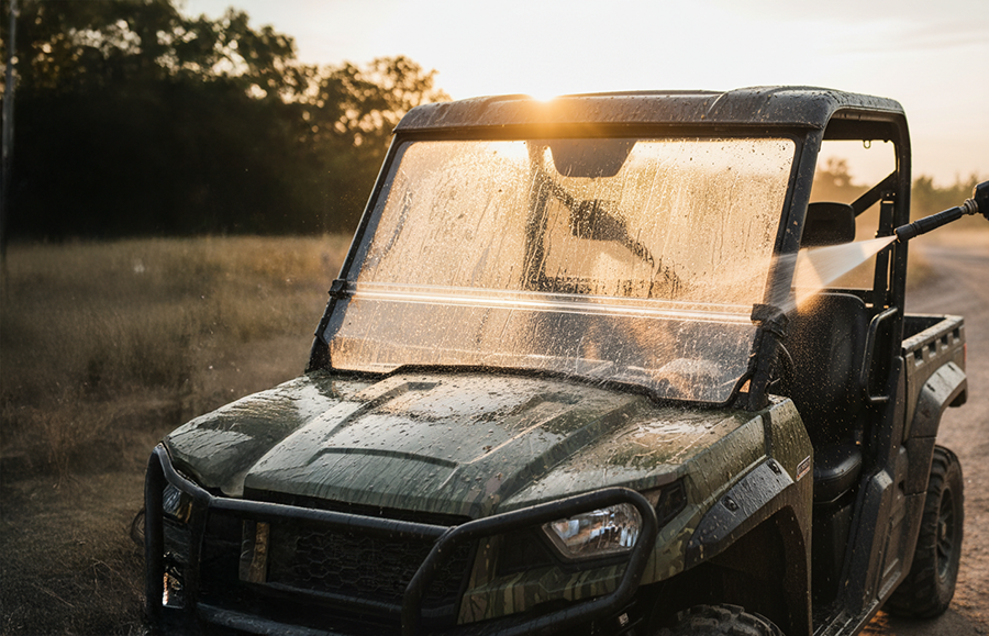 After a long day on dusty trails, your instinct might be to grab a towel and start wiping. Don’t. Wiping dirt or sand across a dry windshield is one of the fastest ways to leave visible scratches. Here’s how to clean your UTV windshield properly: